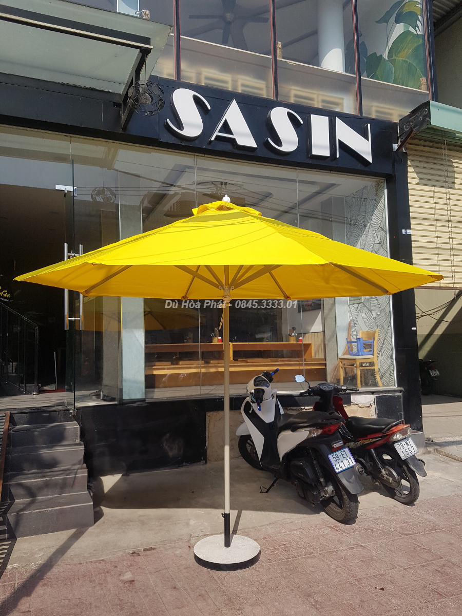 Với khu vực trong sân hoặc ít gió, dù đứng tâm là giải pháp che nắng tiết kiệm chi phí và dễ sử dụng.