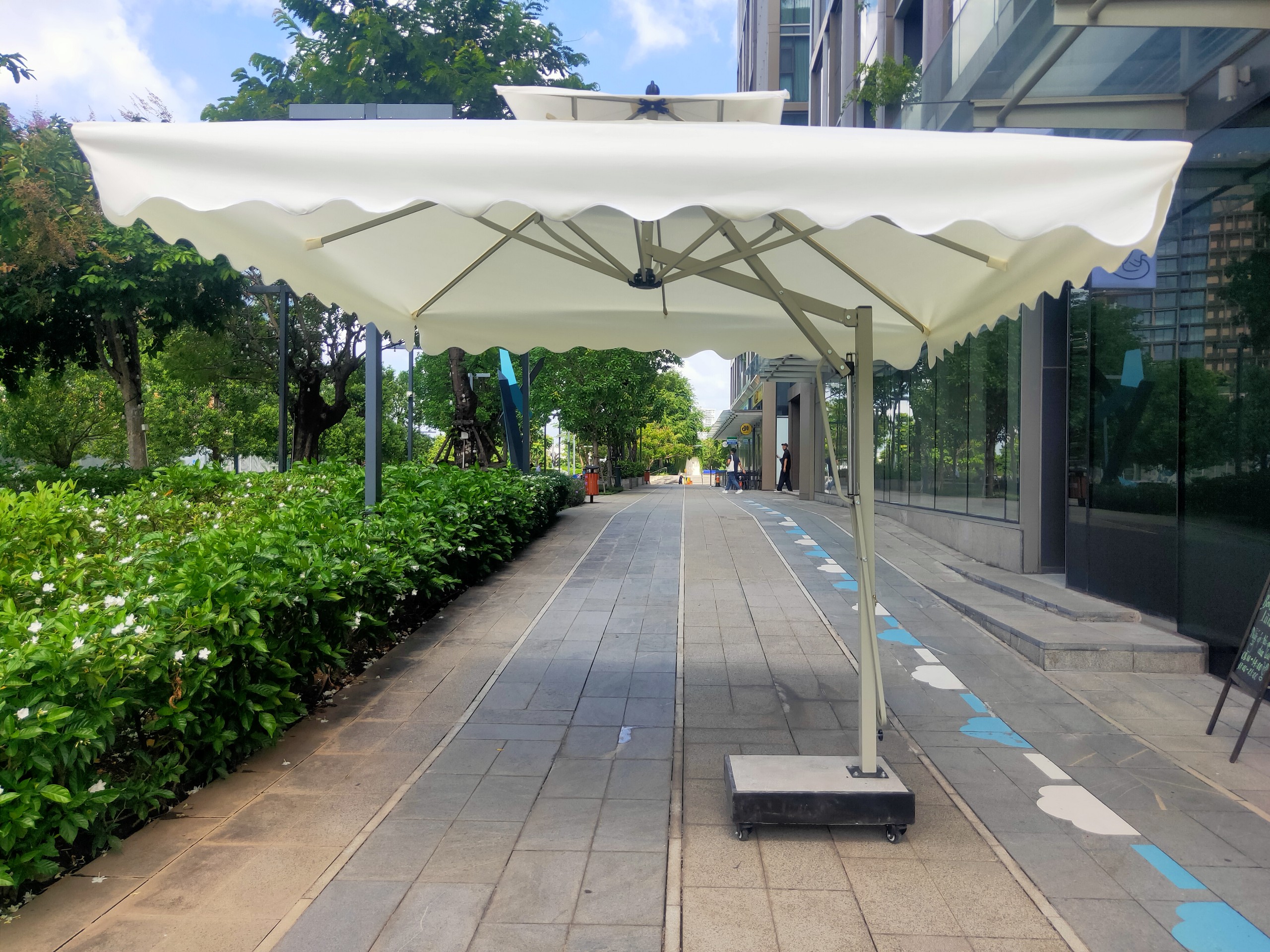 Trong đó, dù lệch tâm đang là dòng sản phẩm được các quán cafe và resort tại Đà Nẵng ưu tiên sử dụng nhờ khả năng che nắng rộng và thiết kế sang trọng.