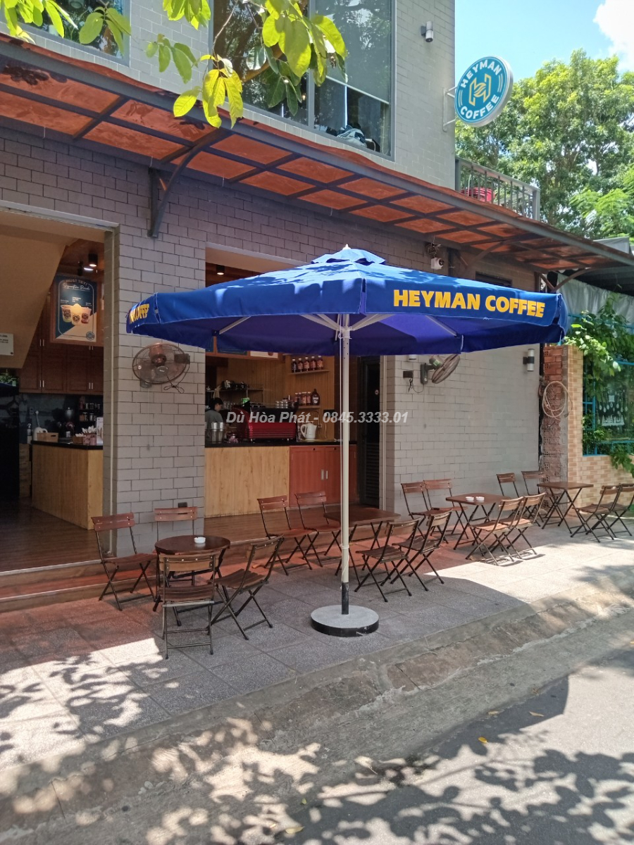 Với quán cafe nhỏ hoặc kinh doanh vỉa hè, dù đứng tâm là giải pháp che nắng tiết kiệm chi phí, dễ di chuyển và linh hoạt khi sắp xếp lại không gian.